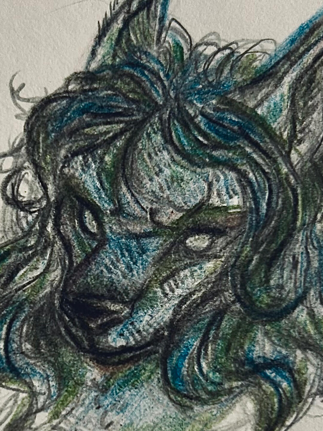 I’m Runa (They/Xe/It/Howl), I’ve been around for ~285 full moons (23 years old). I use art to express my vulnerability through a lycanthropic persona. I feel that is the best way to express my pain and even be able to transform away from it. (I do not have lycanthropy. This is simply artistic expression.)